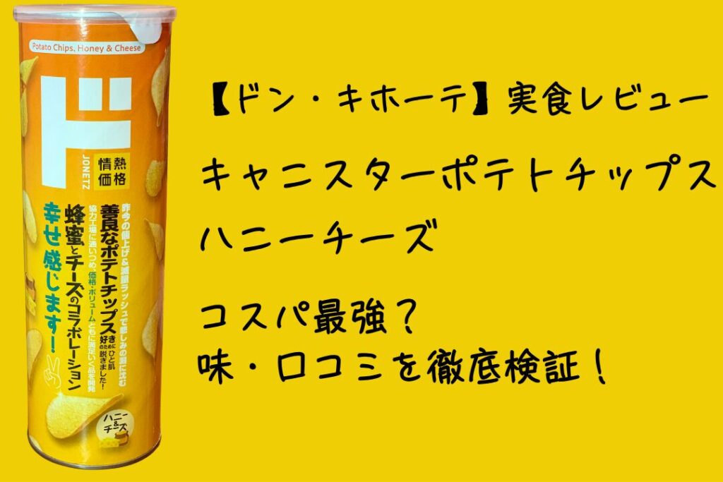 ドン・キホーテの「キャニスターポテトチップス ハニーチーズ」は、150gで193円前後という驚異的なコストパフォーマンスに加え、蜂蜜とチーズの絶妙な甘じょっぱさがクセになる、非常に満足度の高いスナック菓子です。